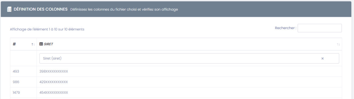 L'outil va lancer une détection automatique des champs du fichier importé, comptabiliser le nombre total de lignes et de colonnes, et détecter le format d'encodage du fichier.