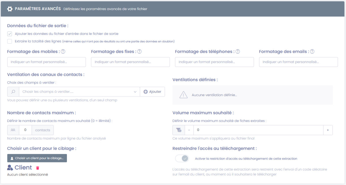 Formatage des données : permet de définir un format précis pour les champs mobile / fixe / téléphone ou email à extraire